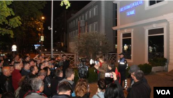 Protestuesit hodhën parrullat “Poshtë Diktatura” dhe “Lironi vëllezërit tanë!”.