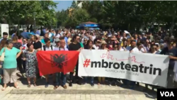 “Teatri Kombëtar është pasuri kombëtare. Kjo është ndërtesa me më shumë histori nga gjithë ndërtesat e shtetit shqiptar. Pronarët e asaj toke e kanë lëshuar me amanet për të qenë Teatër Kombëtar. Kush shemb Teatrin bën një krim e duhet dënuar për tradhti kombëtare” - tha shkrimtari i njohur Rudi Erebara, një nga nismëtarët e protestave.