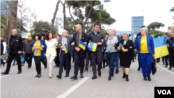 Nga qendra e kryeqytetit ku u mblodhën fillimisht, nën shoqërinë dhe të kryebashkiakut Erion Veliaj, manifestuesit marshuan përgjatë bulevardit. Me ta ishte dhe ambasadori i Ukrainës Shkurov.