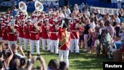 Në Uashington, turma të mëdha ndoqën fishekzjarret, me Monumentin Kombëtar në sfond. Disa qytete e shtynë për sot shfaqjen e fishekzjarreve, për shkak të shirave të uraganit Arthur, që preku disa pjesë të bregut lindor të Shteteve të Bashkuara.