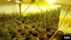 Në serën me kushte moderne rriteshin bimët e marijuanës me anë të llampave elektrike.