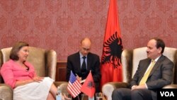 Ndihmës sekretarja amerikane e Shtetit Victoria Nuland zhvilloi gjatë pasdites dhe mbrëmjes së djeshme një vizitë zyrtare në Tiranë, pjesë e nje turi diplomatik të saj në vendet e Ballkanit perëndimor. Zonja Nuland pati takime me përfaqësuesit më të lartë të shtetit dhe politikës së vendit. Në njoftimet zyrtare për bisedimet e zhvilluara nuk është dhënë informacion mbi qëndrimet e diplomates së lartë amerikane, por vetëm ato të bashkëbiseduesve të saj shqiptarë, përjashto vlerësimin për rolin e Tiranës në rajon dhe urimet e saj për marrjen nga ana e Shqipërisë të Statusit të vendit kandidat.