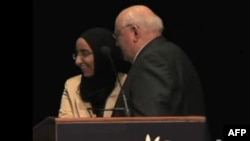 Saleh pati nderin të prezantonte ish presidentin e Bashkimit Sovjetik Mikhail Gorbachev, i cili mori Çmimin Nobel të Paqes para se ajo të kishte lindur.