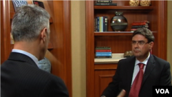 Kryeministri Hashim Thaçi ndodhet në Shtetet e Bashkuara për një vizitë zyrtare gjatë së cilës u takua dje me nën-presidentin Jo Biden. Nën presidenti amerikan shprehu mbështetjen e tij për marrëveshjen Kosovë Serbi për veriun e Kosovës dhe bëri thirrje për zbatimin e marrëveshjes sa më shpejtë dhe në mënyrë të plotë. Pas takimit kryeministri Thaçi i tha Zërit të Amerikës se zbatimi i marrëveshjes është jetik për të dyja vendet dhe integrimet e tyre evropiane.