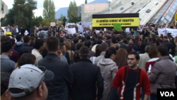 Grupe qytetarësh, studentësh dhe veprimtarë të mbrojtjes së mjedisit vijuan sot protestën e tyre kundër sjelljes së armëve kimike të Sirisë për t'u përpunuar në Shqipëri. Ata u mblodhën në sheshin Skënderbej, kaluan me thirrje e parrulla në duar shëtitoren “Dëshmorët e Kombit” dhe protestuan në sheshin para kryeministrisë.